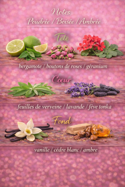 Cette fragrance, aux notes poudrées, boisées et ambrées, enveloppe votre espace d'un voile de luxe et de mystère, idéal pour les soirées de détente ou les moments de contemplation.