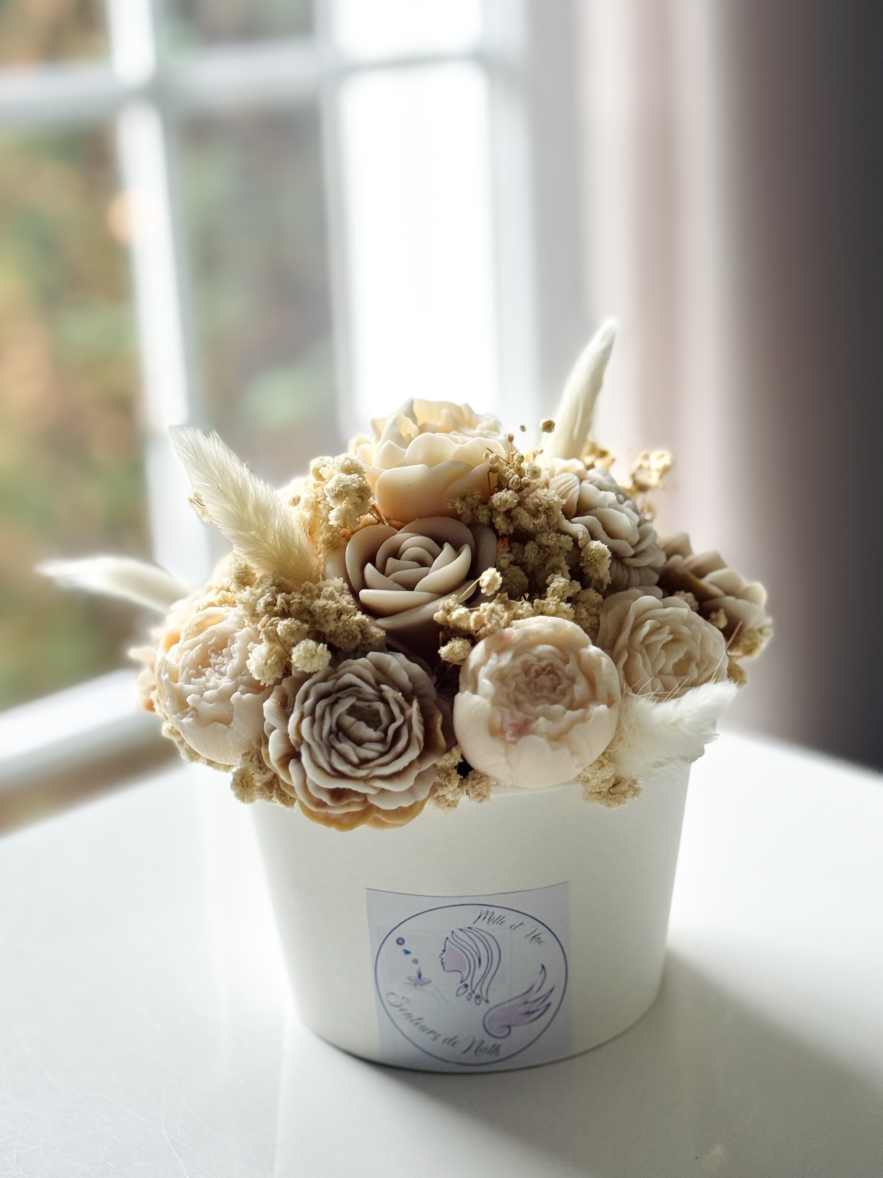Présentée dans un écrin naturel, elle décore et embaume subtilement chaque espace, offrant une expérience olfactive chic et apaisante.