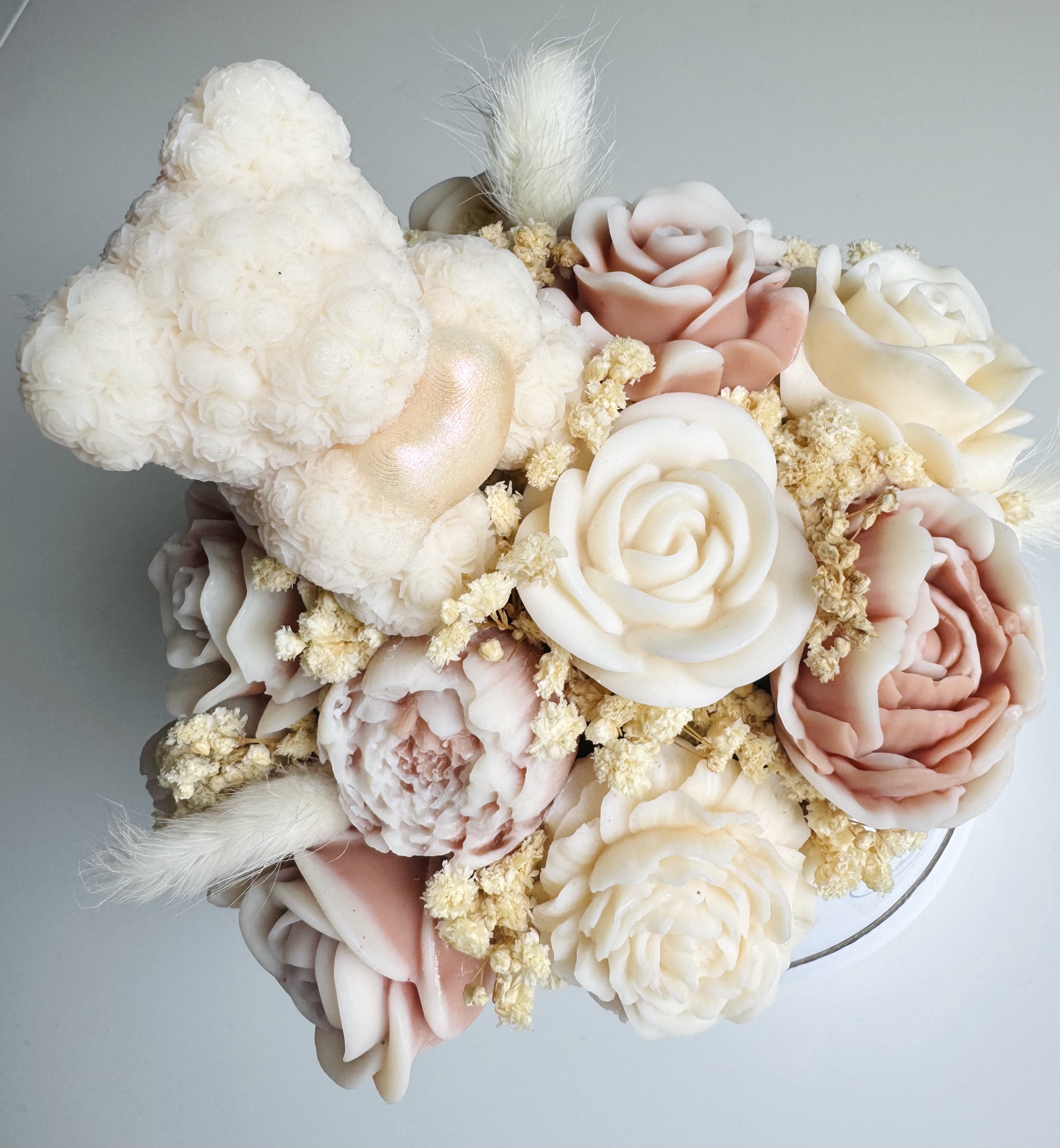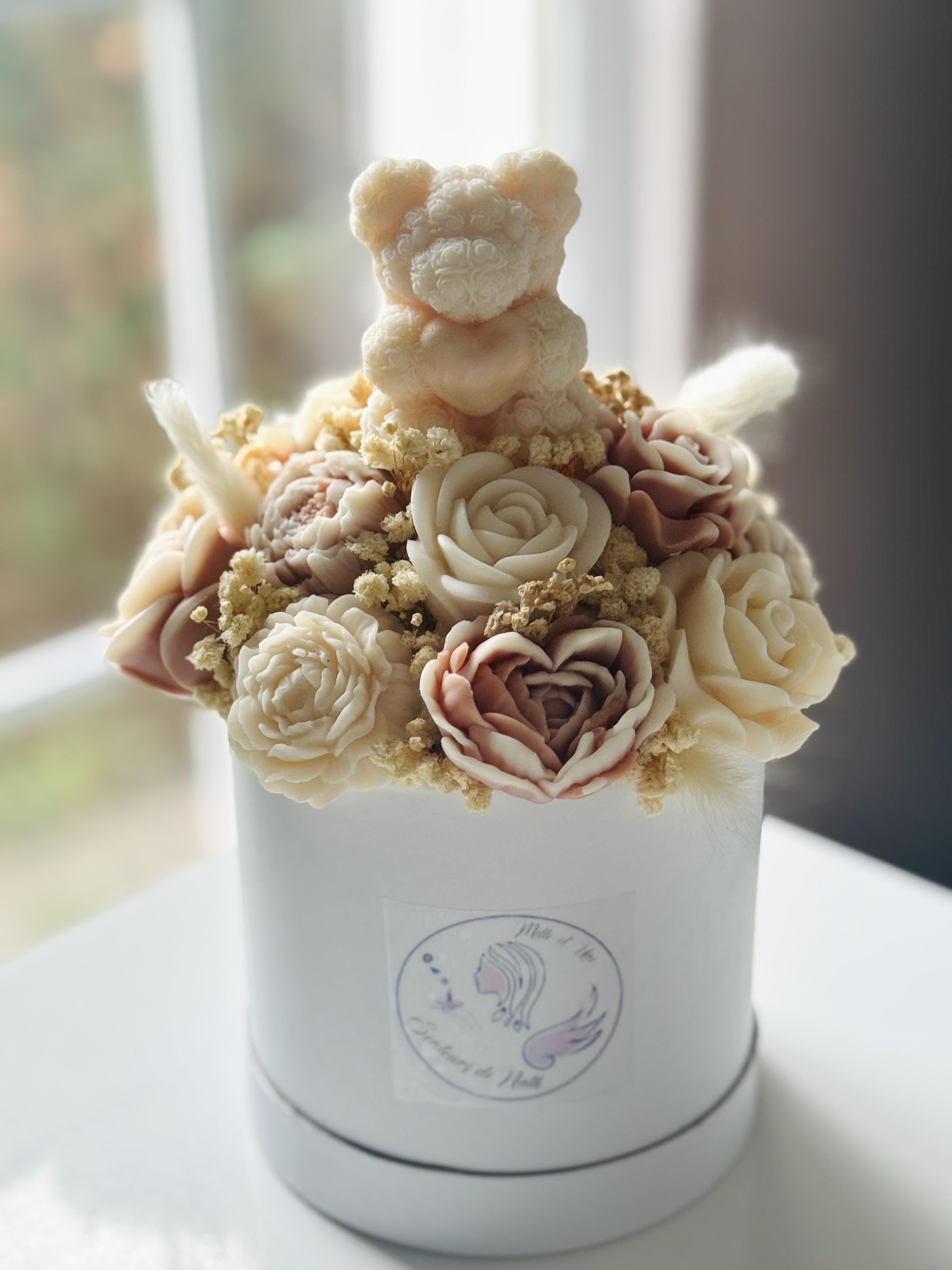 Taille S ourson: fondants beige brun/ senteur «fleur de coton »