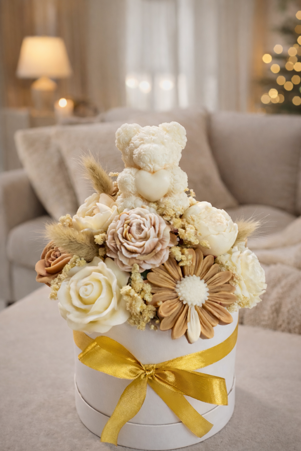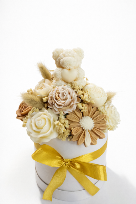 Composition ourson: fondants beige brun/ senteur «fleur de coton »