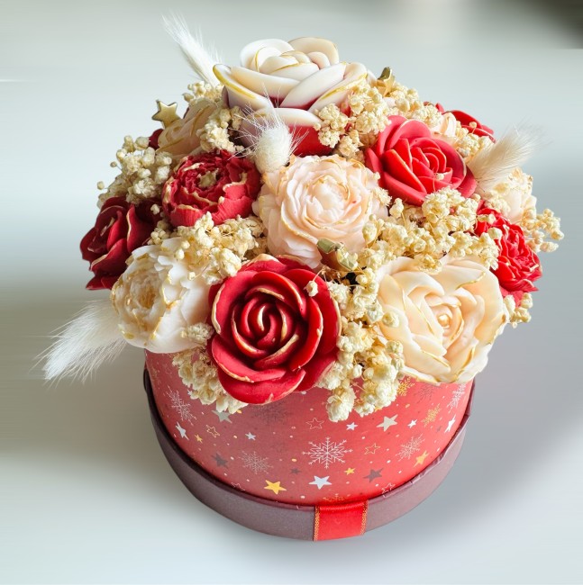 Taille L: Composition fondants rouge/ivoire « chalet en Laponie »